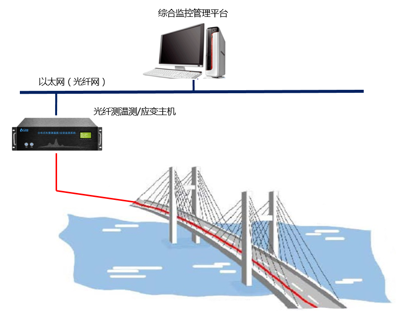 分布式光纖應變和溫度傳感解析系統對橋梁、大壩結構健康進行分布式實時監測,可以實現對橋梁、大壩的應變、位移、溫度、振動、沉降、傾斜、索力等多參數監測。同時對系統的解調數據進行分析,形成橋梁、大壩監測數據庫,可以用于結構健康診斷、報警。