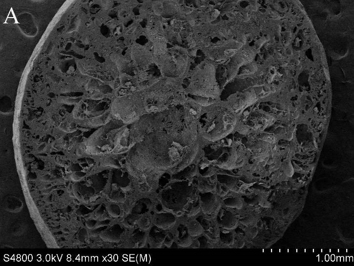 固定化菌劑顆粒的顯微結(jié)構(gòu)