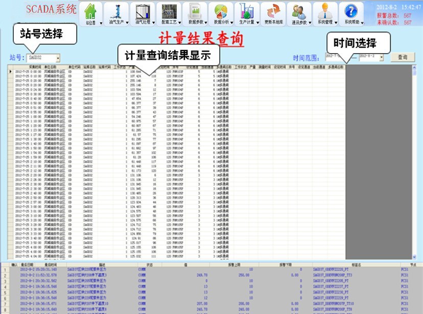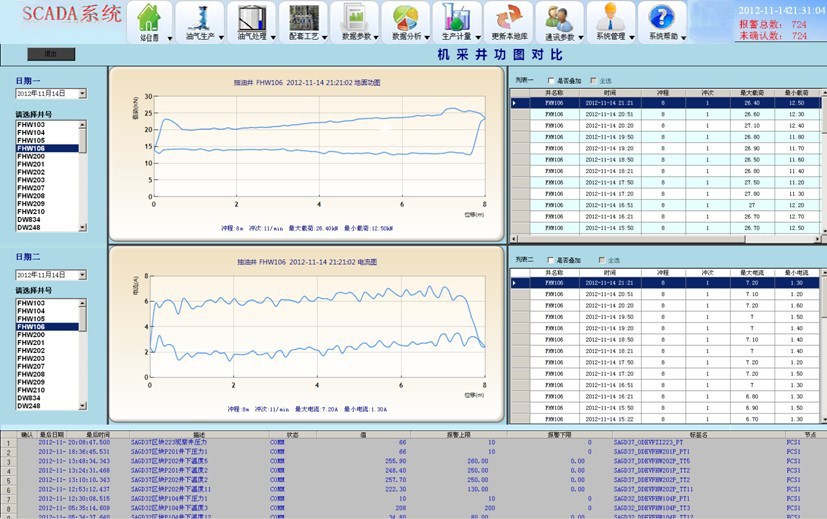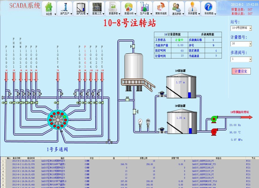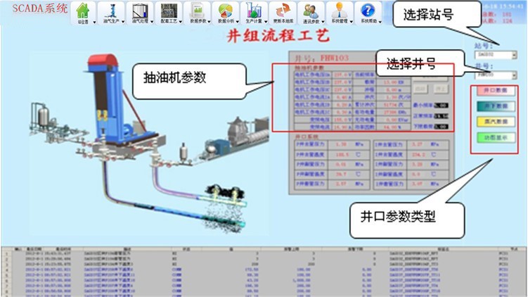 利用實時采集的數據動態顯示油井、聯合站、注水站工藝的流程。主要包括:油井工藝流程、鍋爐工藝流程、注水站工藝流程、聯合站工藝流程、配套工藝流程等功能。